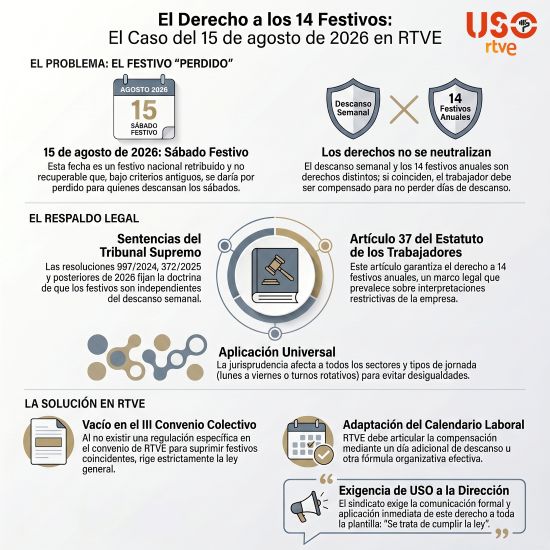 RTVE debe compensar el festivo del 15 de agosto de 2026